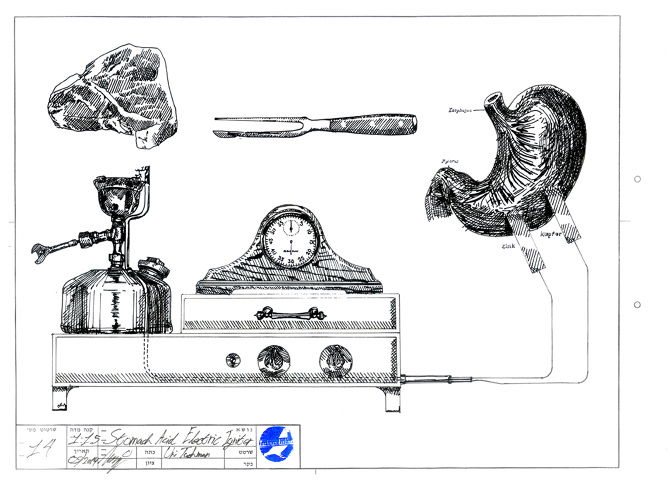 Uri Tuchman is an artist who often chooses to roleplay as an entrepreneur. A unifying front for Uri’s conceptual-concept art is the Tuchman megacorporation. This fictional company includes three branches: “Tuchman Airlines” ; “Tuchman Space Program” and the most recent “Tuchman Industries”. The Tuchman brand is all about portraying the preposterous with style, keeping a strong tension between Decadence and Steampunk. The shell corporation Industrial trade mark is a street pigeon. The company's core values includes a religious - like worship to the mere idea of a piece of toast. His drawings aspire to be “patent illustrations” technical dry- self explanatory sketches look as if they have been taken straight from an mid century dictionary. This appearance is as much an effort to make a fantastic idea “real” as it is a tool to turn the technical into sensual. With a simple ballpoint pen, forgotten and dated inventions are synergised with slick cutting edge technology.
