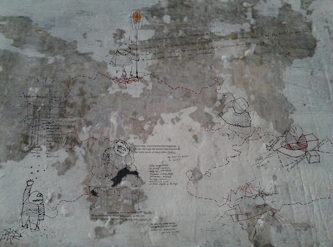 What arises from the translation of an experience, it’s writing and interpretation? How to map etymologically the affects of a person? How to put affects together ( images that remain in you… intensities...forces) in a way where would function as a dance/movement/installation? How to map the passage from one experimental state of the body to another? A research around the process of translation: memory, writing and body. A research on a cartography, on a cartography of an experience in the city, an experience through the people who inhabit it. A topology of encounters. One body made of many other bodies.