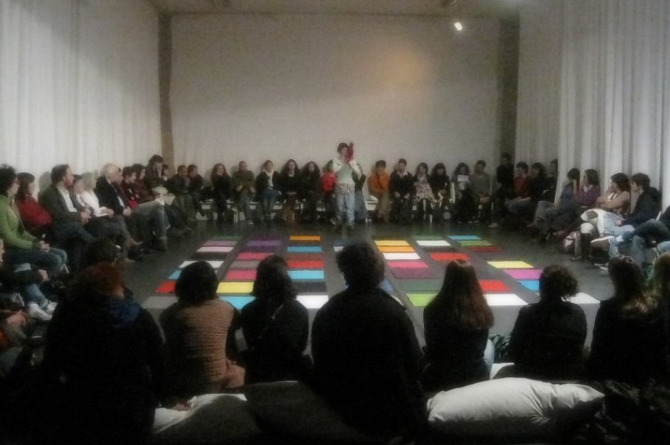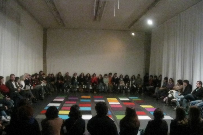 Criação de um dispositivo, plataformas cuja interacção é feita em função da relação sujeito/objecto (cor-indexação / forma-plasticidade), permitindo ao utilizador manipular o sistema e por sua vez produzir efeitos, acções determinadas (mapa individual) que resultam em consequências indeterminadas (mapa colectivo).